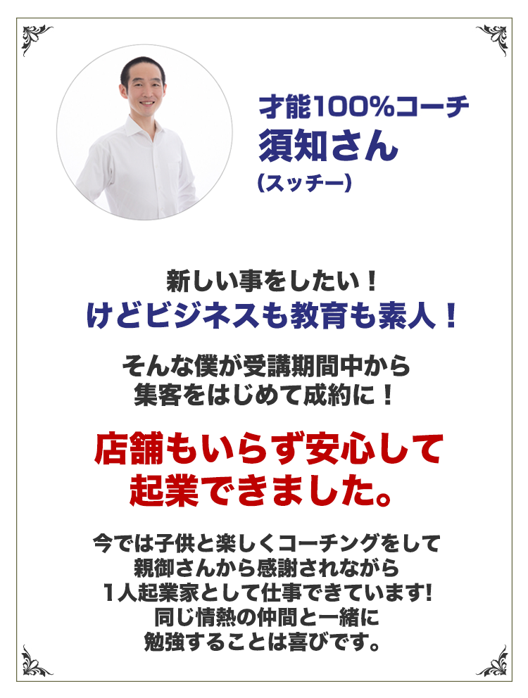 「子ども達の学びの才能を発見することは、子どもたちの未来を照らすこと」という価値観に共感するコーチ起業家を増やすため『学びの“才能”100%コーチ起業』プログラムを公開。